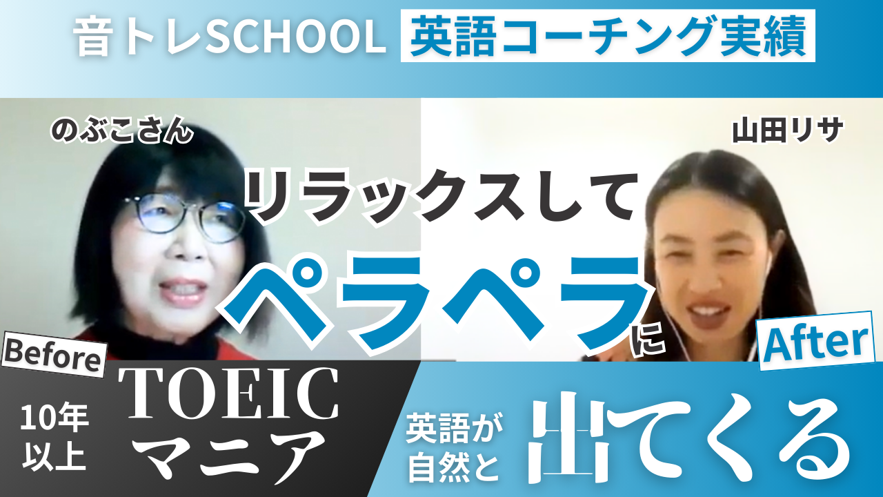 「50代・60代から英語を始めても本当に話せるようになるの…?」 「今までたくさん勉強したのに、聞けない・話せないまま…」 そんな不安を抱える方はとても多いです。 今回ご紹介するのは、60代・前橋亘子(のぶこ)さんの体験談。 TOEICやNHK英語、駅前留学、英会話教室、聞き流し教材など、 10年以上あらゆる英語学習を続けても「聞けない・話せない」から抜け出せなかったのぶこさん。 そんな彼女が、音トレSCHOOLで学び直したことで、 今ではリラックスして自然に英語で会話できるようになりました。 同じ悩みを持つ50代・60代の方に、必ずヒントになる体験談です。